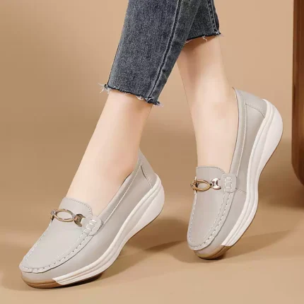 Foreign trade cross-border pointed toe slip-on soft leather loafers for women spring and autumn new all-match thick heel mid-heel fashionable single shoes