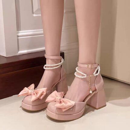 French Chanel style tweed rhinestone high heels women’s thick heels pointed toe single shoes with a single strap side hollow sexy fairy sandals