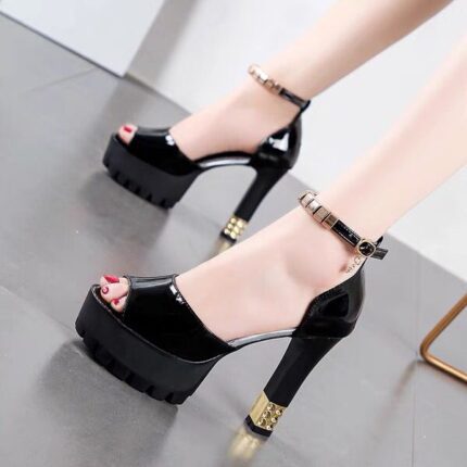 2025 Spring New Women’s Shoes Waterproof Platform One-line Buckle Fish Mouth High Heels