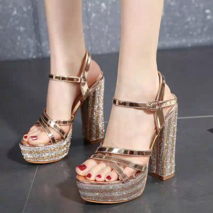 Hentian high thick heel shoes women’s slippers 18cm20cm super high heel sexy sandals