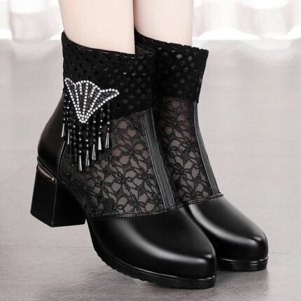 Dadongpang Korean Genuine Leather High Heel Short Boots For Women 2025