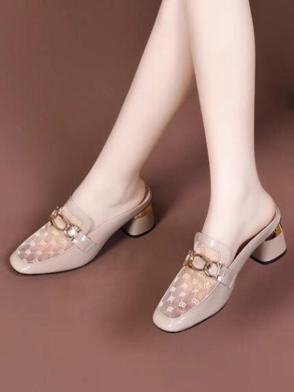 Red jingyan leather 2025 summer new fashion mesh half slippers women’s outdoor low-heel