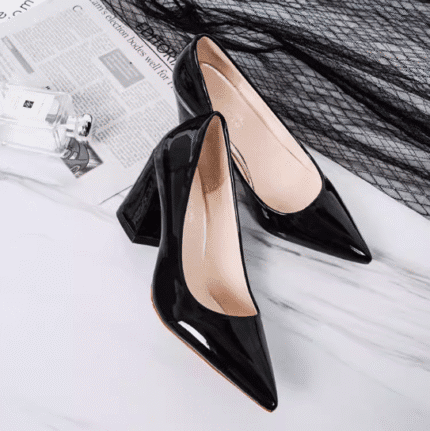 women’s shoes thick heel pointed patent leather black elegant high heels