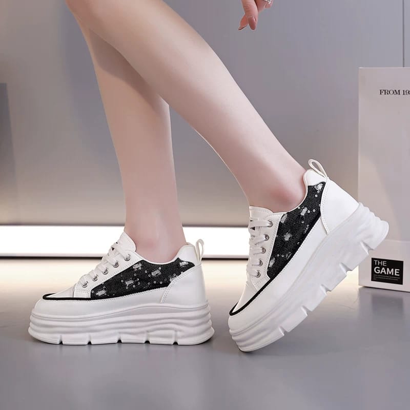 2025 Spring New Style Petite Platform Sneakers with 6cm Hidden Wedge Heel