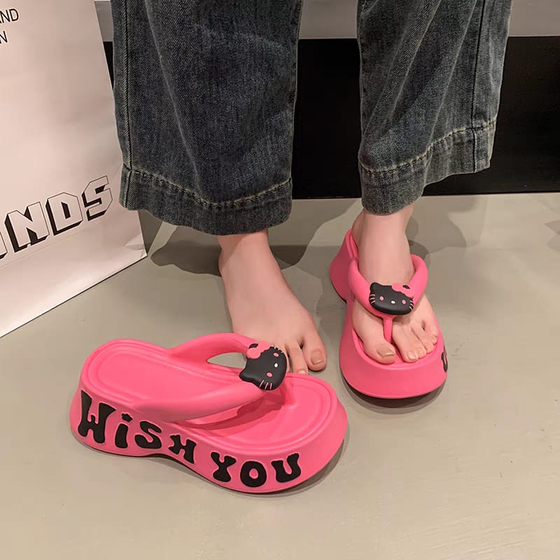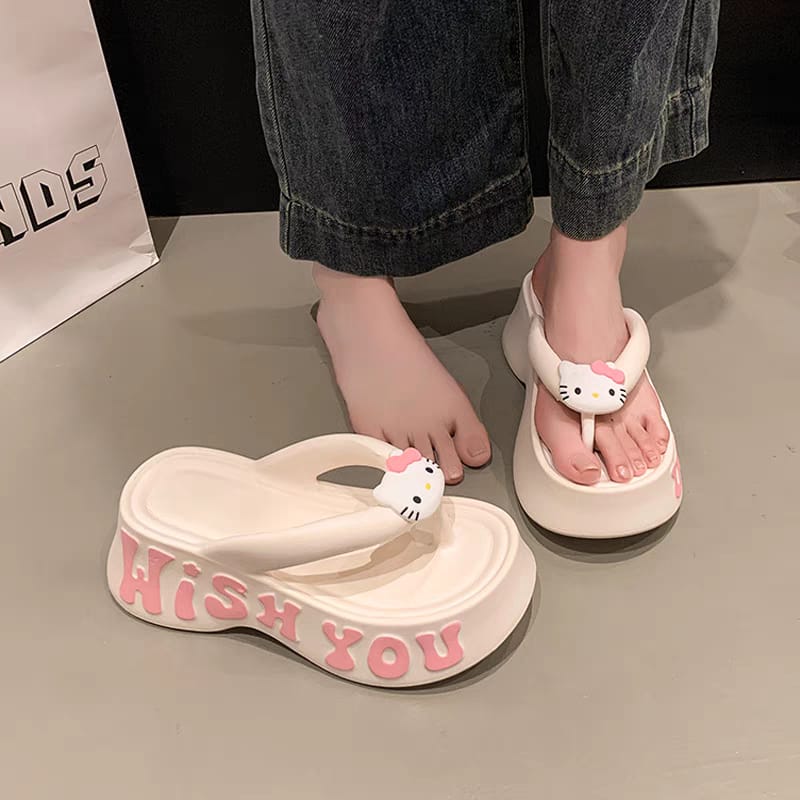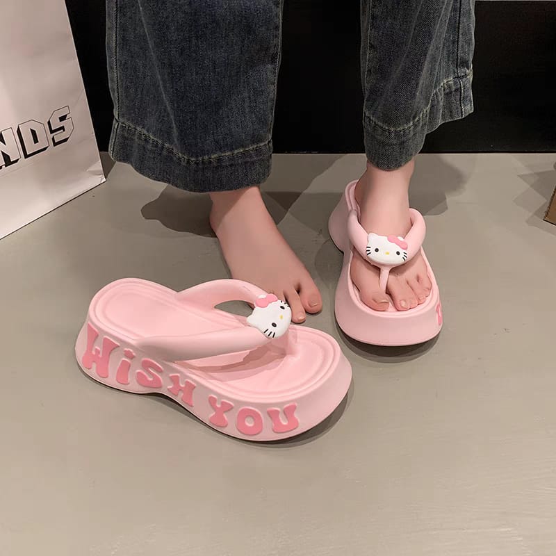 Cartoon hellokitty flip-flops for women to wear outside 2025