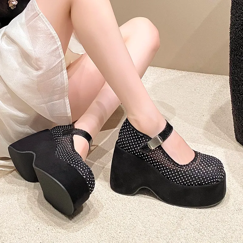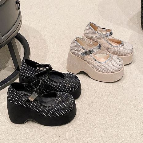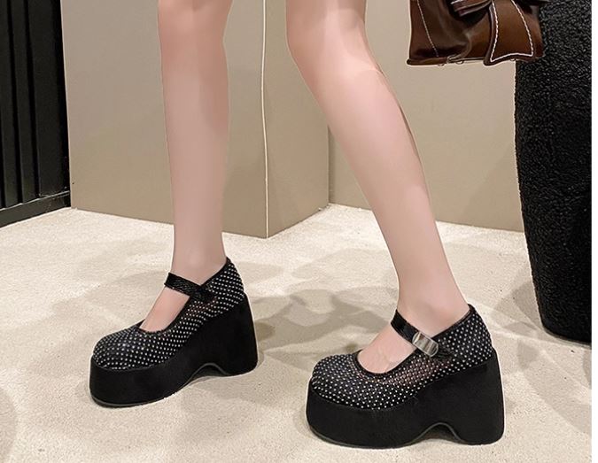 European goods 2025 summer new mesh breathable rhinestone one-strap shallow