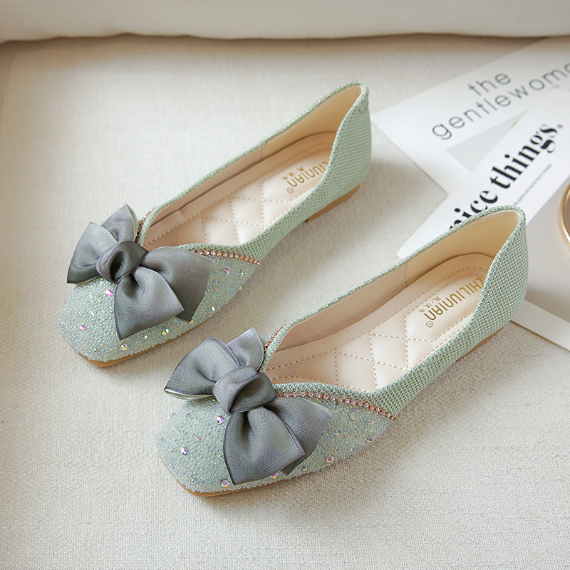Flat shoes for women spring 2025 new bow fairy style gentle shallow mouth scoop shoes vers