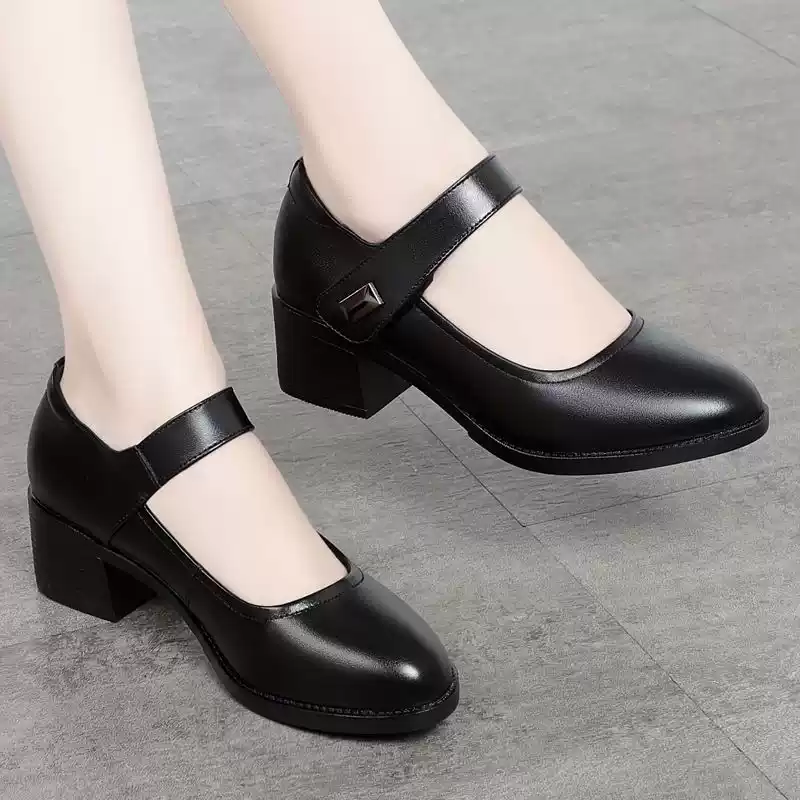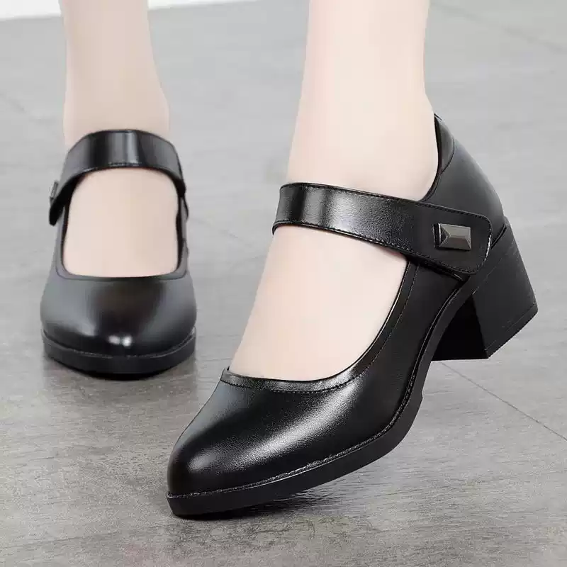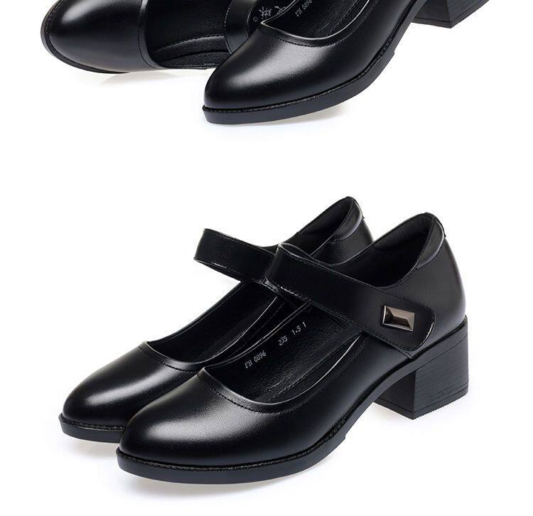 Mother’s shoes single shoes soft sole mid-heel spring and autumn style black middle-aged