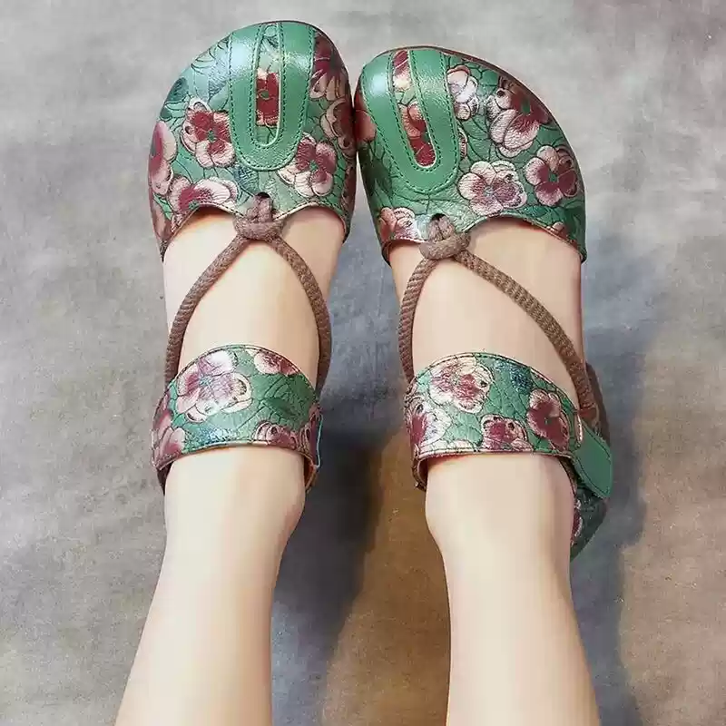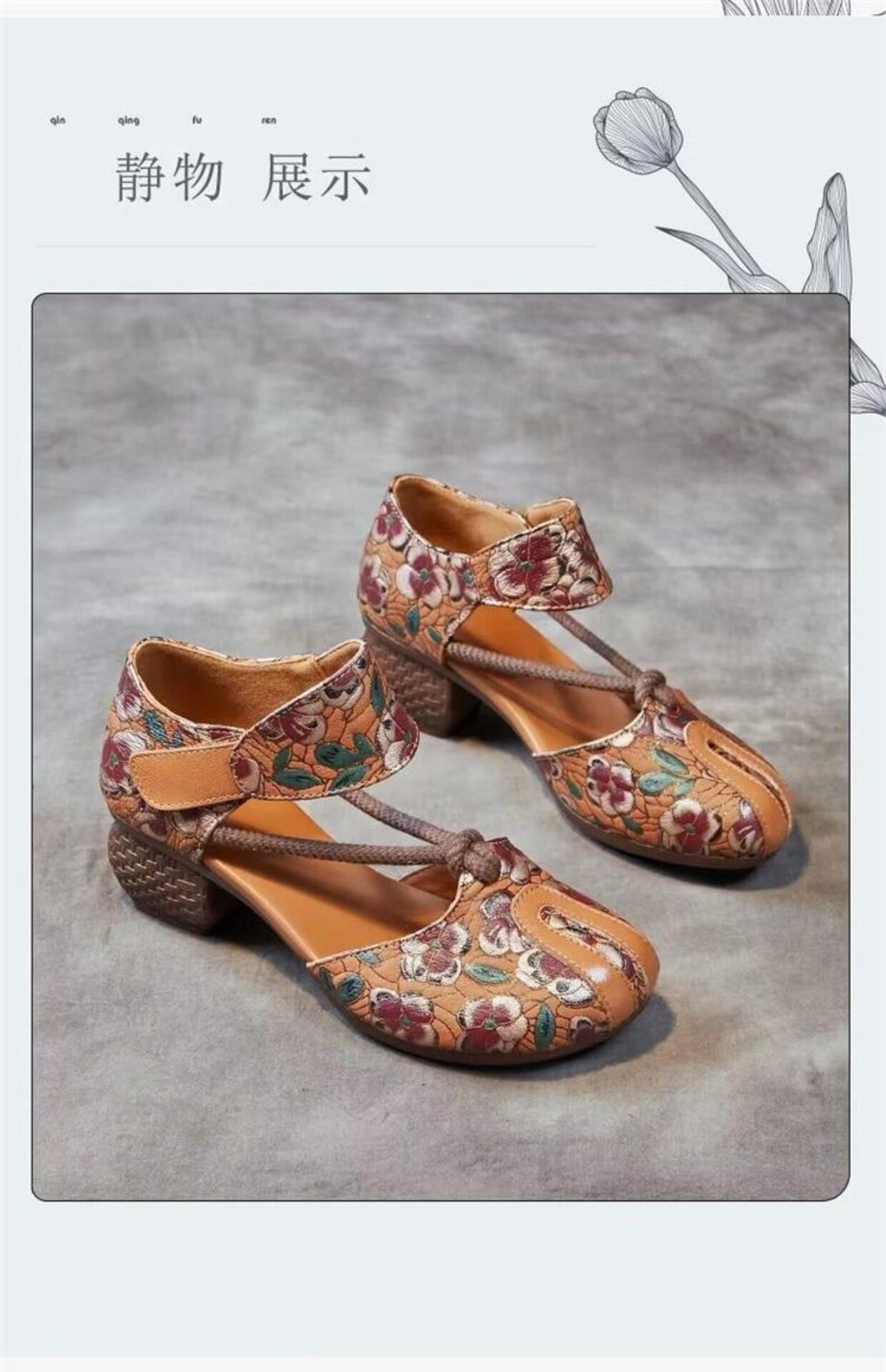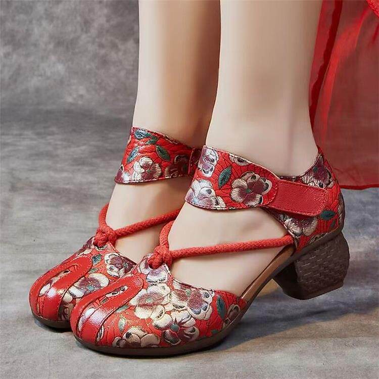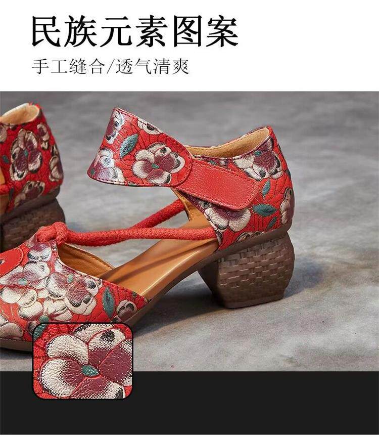 Red dragonfly genuine leather hollow sandals for women 2025 summer new ethnic style