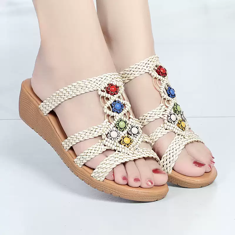 Sandals and slippers women’s summer new flat shoes soft-so led fairy-style non-slip seaside bohemian ethnic style beach shoes
