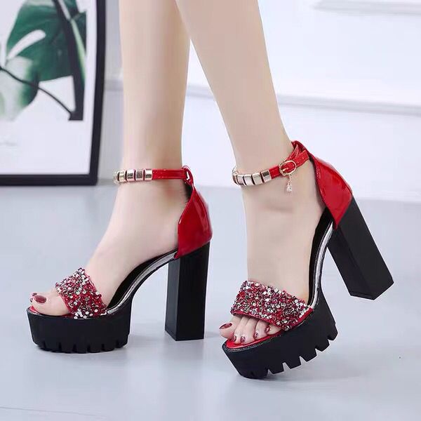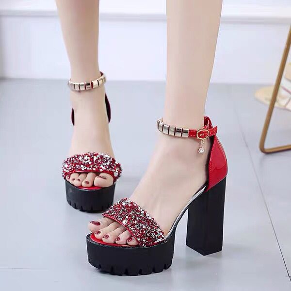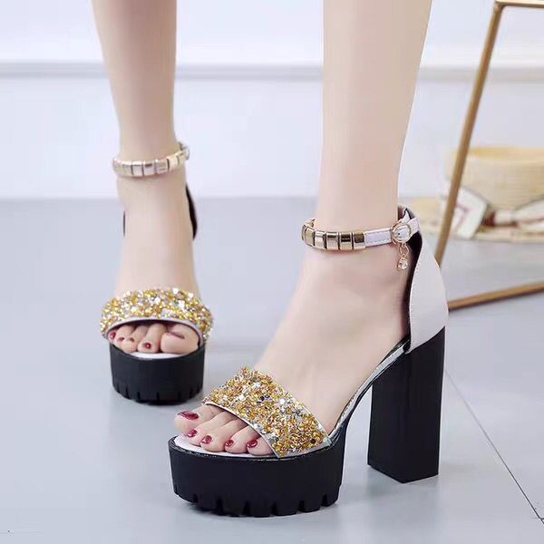 Sequins heightened waterproof platform fashionable open toe women’s shoes