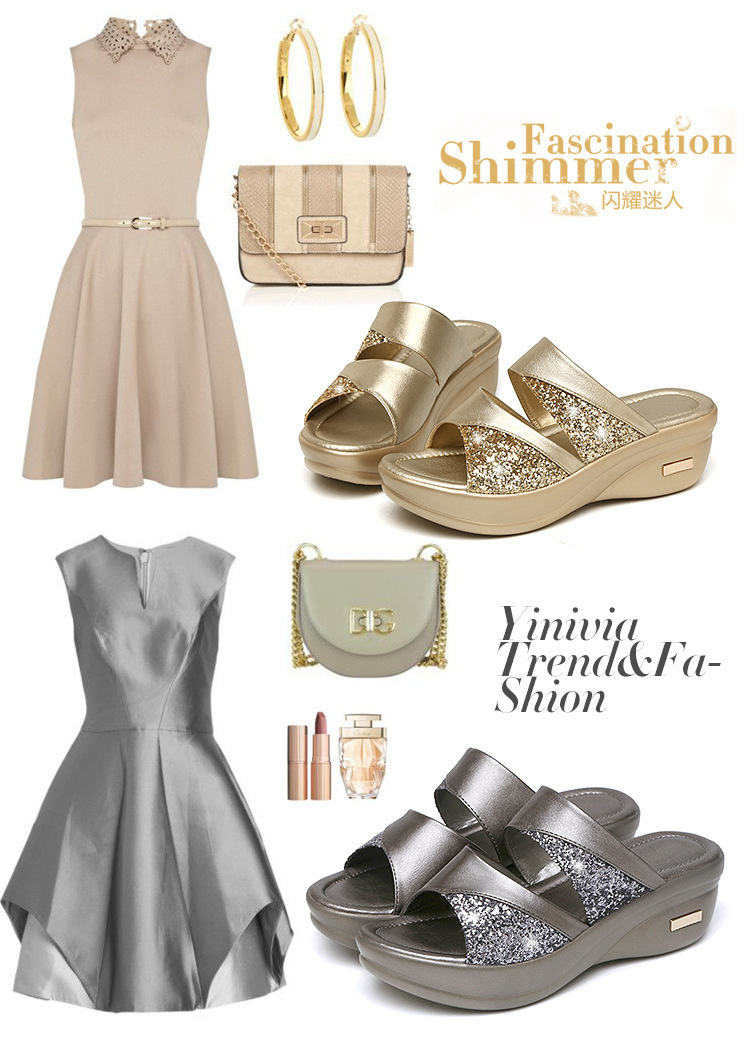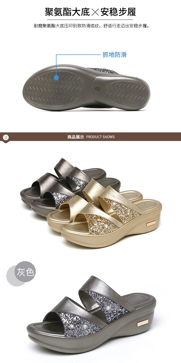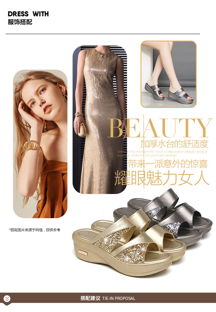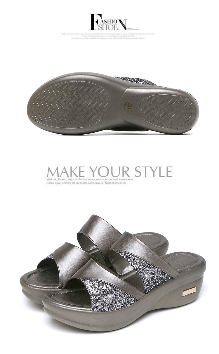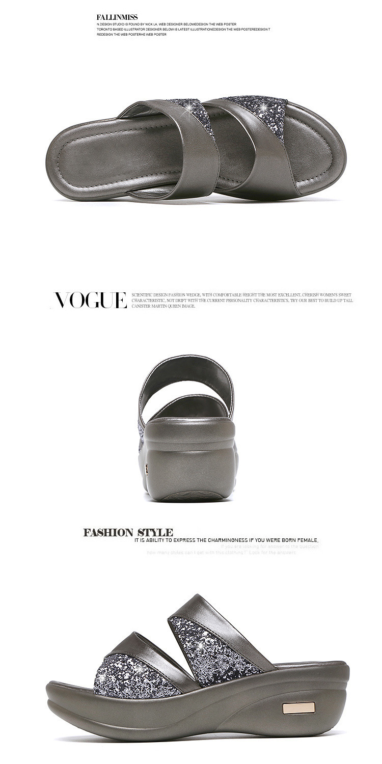 Women’s sandals for summer outdoor wear fashion 2022 new thick-soled platform wedge heels for ladies easy to match fish-mouth sequined slippers for women